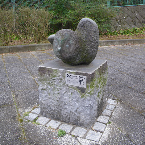 - 22番のふくろうは、21番のふくろうがある交差点からそのまま中学校横の道を下り少し来た方向に戻るか、もしくは20番のふくろうの方向に戻り、中学校の反対側の道を下ってきたところにあります。