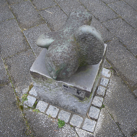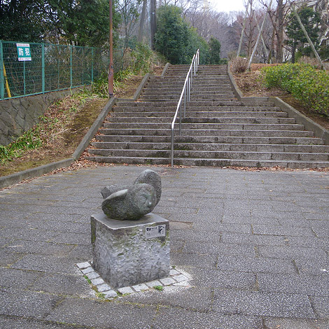 おそらく一番広いスペースに置かれているはずなのですが、銅像自体が小さいせいか、下の道を歩いている時は意外と見落とす位置にあります。
