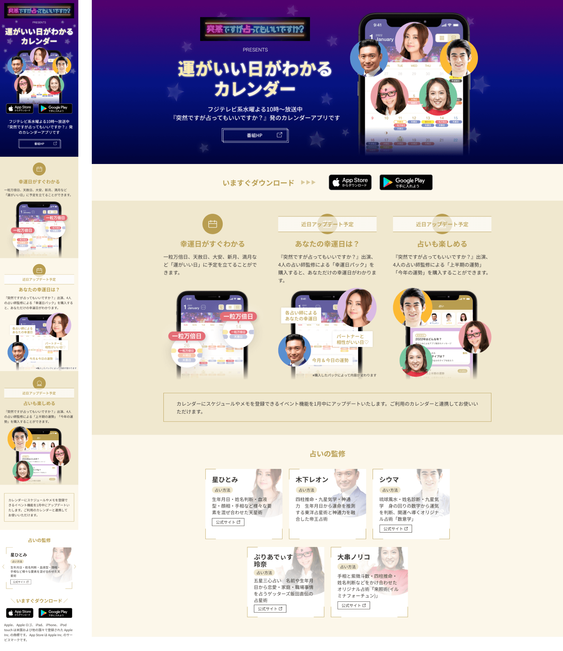 テレビ番組から生まれた紙の占いカレンダーをアプリ化した企画。