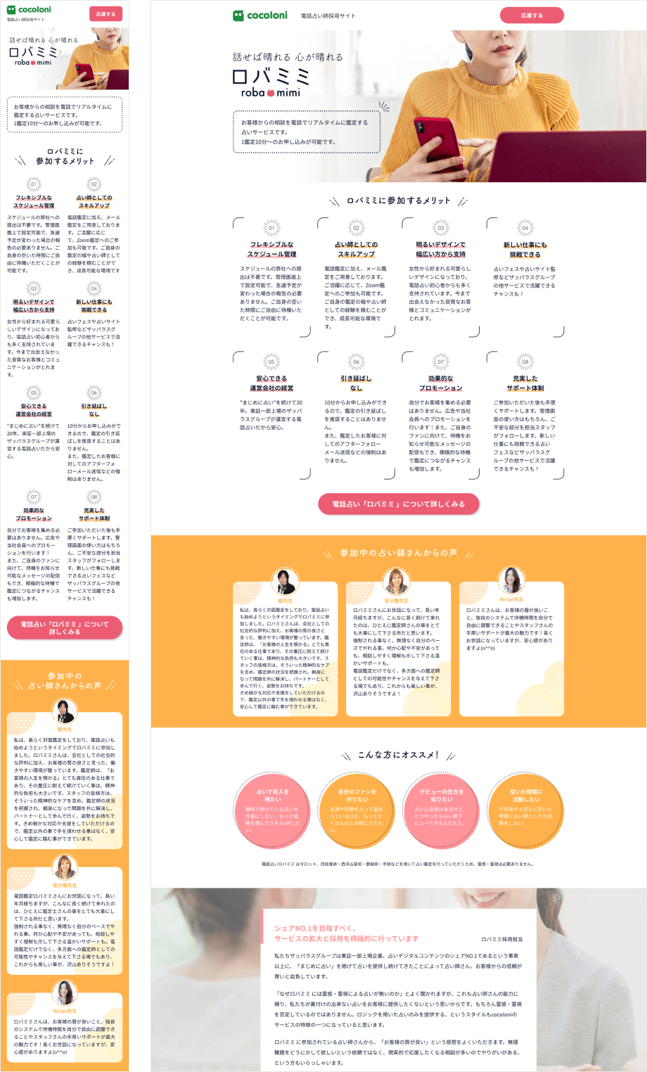 電話占いサービス『ロバミミ』の採用ページをリニューアル。