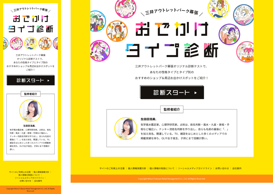 - 診断結果をきっかけに、施設のショップ・イベント情報への導線を意識して設計